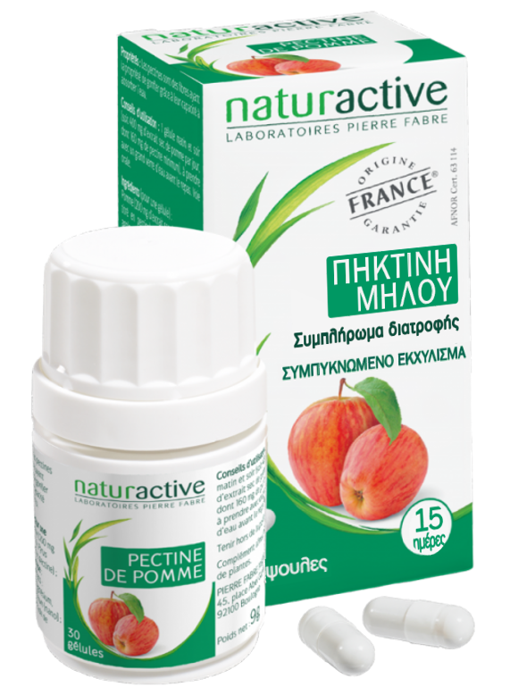 Μήλο (ξηρό εκχύλισµα Pyrus malus L. τιτλοποιηµένο σε πηκτίνη): 200 mg, Ζελατίνη, Λακτόζη. Αντισυσσωµατικοί παράγοντες: στεατικό µαγνήσιο, διοξείδιο πυριτίου (nano).