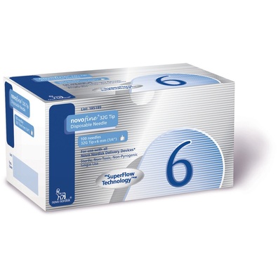 Αποστειρωμένες Βελόνες για εφάπαξ χρήση με τα συστήματα χορήγησης της NOVO NORDISK.Η σειρά των βελονών NovoFine συνδυάζει τα νεότερα κλινικά ευρήματα με την τεχνολογία αιχμής για την κατασκευή βελονών που προκαλούν σημαντικά λιγότερο πόνο και απαιτούν λιγότερη πίεση για την εκτέλεση της ένεσης. Οι κοντές βελόνες των 6mm συντελούν στην πιο προβλέψιμη απορρόφηση της ινσουλίνης μειώνοντας σημαντικά τον κίνδυνο ενδομυϊκής ένεσης. Οι βελόνες NovoFine κατασκευάζονται για να χρησιμοποιηθούν με τα συστήματα χορήγησης της Novo Nordis.
