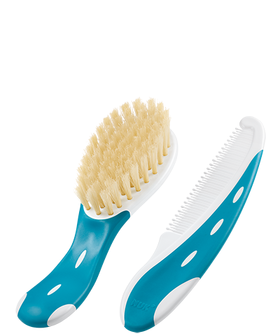 Για τη φροντίδα του μωρού σας θα εμπιστευόσασταν απλά μια βούρτσα από φυσική τρίχα; Η βρεφική βούρτσα της NUK κατασκευάζεται από 100% φυσική τρίχα για μοναδική απαλότητα και φυσική αίσθηση. Τα δόντια της χτένας είναι στρογγυλεμένα, ώστε να προστατεύεται το ευαίσθητο δερματάκι του μωρού σας. Ο ειδικός σχεδιασμός της λαβής εξασφαλίζει ασφαλές κράτημα. Το σετ βούρτσας-χτένας είναι ειδικά σχεδιασμένο για την καθημερινή περιποίηση των μαλλιών των μωρών και των νηπίων και διατίθεται σε τρία ελκυστικά χρώματα.