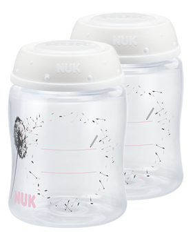 Η ΝUK σχεδίασε το δοχείο αποθήκευσης μητρικού γάλακτος με σκοπό την ιδανική και υγιεινή διατήρηση του μητρικού γάλακτος. Το δοχείο είναι συμβατό με το χειροκίνητο θήλαστρο Jolie, με όλα τα ηλεκτρικά θήλαστρα της NUK, καθώς και με όλες τις θηλές NUK First Choice και First Choice+. Χάρη στο δοχείο αποθήκευσης μητρικού γάλακτος της NUK μπορείτε να διατηρήσετε και να ζεστάνετε το μητρικό γάλα, καθώς και να ταΐσετε το μωρό σας χωρίς την ενοχλητική διαδικασία της μετάγγισης. Επιπλέον, μπορείτε να διατηρήσετε τα δοχεία για χρονικό διάστημα έως 6 μηνών στην κατάψυξη. Για να μην ξεχάσετε την ημερομηνία άντλησης μπορείτε να την σημειώσετε πάνω στο προβλεπόμενο πεδίο. Είναι αυτονόητο ότι μπορείτε να αποστειρώσετε τα δοχεία, εφόσον είναι κατάλληλα για πολλαπλές χρήσεις.