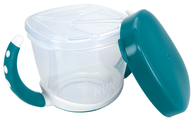 Σε αυτές τις περιπτώσεις σας προτείνουμε το NUK Easy Learning Snack Box: Κατάλληλο για τη διατήρηση και τη μεταφορά μικρογευμάτων, όπως κομμένων φρούτων και λαχανικών.