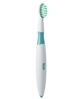 Η εκπαιδευτική οδοντόβουρτσα NUK είναι ιδανική για να μάθει το παιδί σας να πλένει μόνο του τα δόντια του. Οι απαλές, στρογγυλεμένες τρίχες της βούρτσας προστατεύουν τα ευαίσθητα ούλα των παιδιών. Η αντιολισθητική λαβή ασφαλείας επιτρέπει στους γονείς να κρατούν την οδοντόβουρτσα ταυτόχρονα με το παιδί για να του δείξουν τις σωστές κινήσεις βουρτσίσματος. Ο προστατευτικός δακτύλιος δεν επιτρέπει στη βούρτσα να εισχωρήσει πολύ βαθιά στο στόμα, ενώ λειτουργεί και ως βάση.