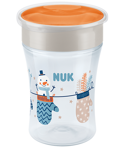 Το να μάθει να πίνει αυτόνομα είναι ένα από τα πιο σημαντικά βήματα στην ανάπτυξη ενός μωρού. Το Ποτηράκι NUK Magic Cup δίνει τη δυνατότητα στα παιδιά να πίνουν σαν ενήλικες: σαν να πίνουν από κανονικό ποτήρι και απ’ όλες τις πλευρές. Η μαγική διαφορά: το ποτήρι δεν στάζει. Ένας δίσκος σιλικόνης σφραγίζει το καπάκι από μέσα. Έτσι, το να πίνουν γίνεται παιχνιδάκι για τα παιδιά: αρκεί να ασκήσουν πίεση με το στόμα τους στο χείλος του ποτηριού και ο λεπτός δίσκος που το σφραγίζει ανοίγει – έτσι, μαθαίνουν να πίνουν μαγικά!