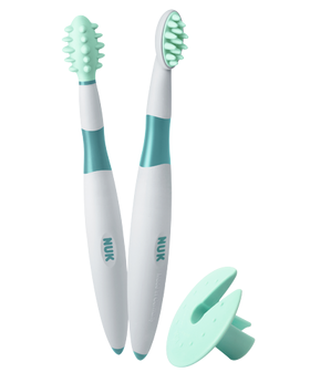- Στάδιο 2: Εκπαιδευτικό βοήθημα βουρτσίσματος NUK με μαλακή και ανθεκτική σε δαγκωματιές ανάγλυφη επιφάνεια από λάστιχο για το πρώτο απαλό καθάρισμα των δοντιών