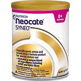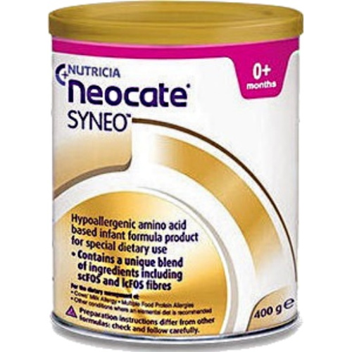 Το Neocate Syneo® είναι τρόφιμο για ειδικούς ιατρικούς σκοπούς. Βρεφική φόρμουλα σε μορφή σκόνης με βάση μη αλλλεργιογόνα αμινοξέα, σε κουτί 400g. Δεν περιέχει συνεπώς, πρωτεΐνες γάλακτος αγελάδος ή πρωτεϊνικά υπολείμματα. Εμπλουτισμένο με συμβιοτικά, αραχιδονικό οξύ, δοκοσαεξανοϊκό οξύ (DHA) και νουκλεοτίδια. Ελεύθερο γλουτένης και λακτόζης. Το Neocate Syneo περιέχει μίγμα συνβιοτικών που αποτελλείται από το προβιοτικό Bifidobacterium breve M16-V και ενα μίγμα πρεβιοτικών κοντής και μακράς αλύσου φρουκτοολιγοσακχαριτών (scFOS/lcFOS). Παρέχει όλα τα απαραίτητα θρεπτικά συστατικά για την κάλυψη των αναγκών των βρεφών από τη γέννηση έως 1 έτους με αλλεργία στις πρωτεΐνες του γάλακτος αγελάδας που δεν ανταποκρίνεται σε προϊόντα με εκτενούς υδρόλυσης πρωτεϊνη, πολυτροφικές αλλεργίες, ηωσινοφιλικές γαστρεντερικές παθήσεις (EGID) ή σύνδρομο Εντεροκολίτιδας επαγώμενο από τροφική πρωτεΐνη (FPIES).