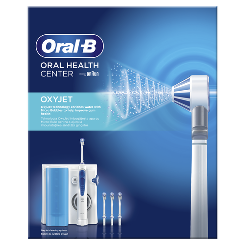 Το σύστημα στοματικού καταιονισμού Oral-B OxyJet χρησιμοποιεί τεχνολογία μικροφυσαλίδων για την καταπολέμηση των βακτηρίων που προκαλούν την πλάκα.