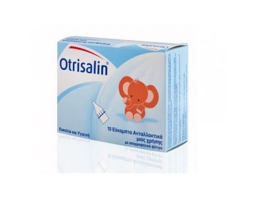 Η συσκευασία ανταλλακτικών Otrisalin περιέχει 10 εύκαμπτα ανταλλακτικά ακροφύσια μιας χρήσης με απορροφητικό φίλτρο που χρησιμοποιούνται με τη συσκευή Ρινικής Απόφραξης Otrisalin για μωρά.