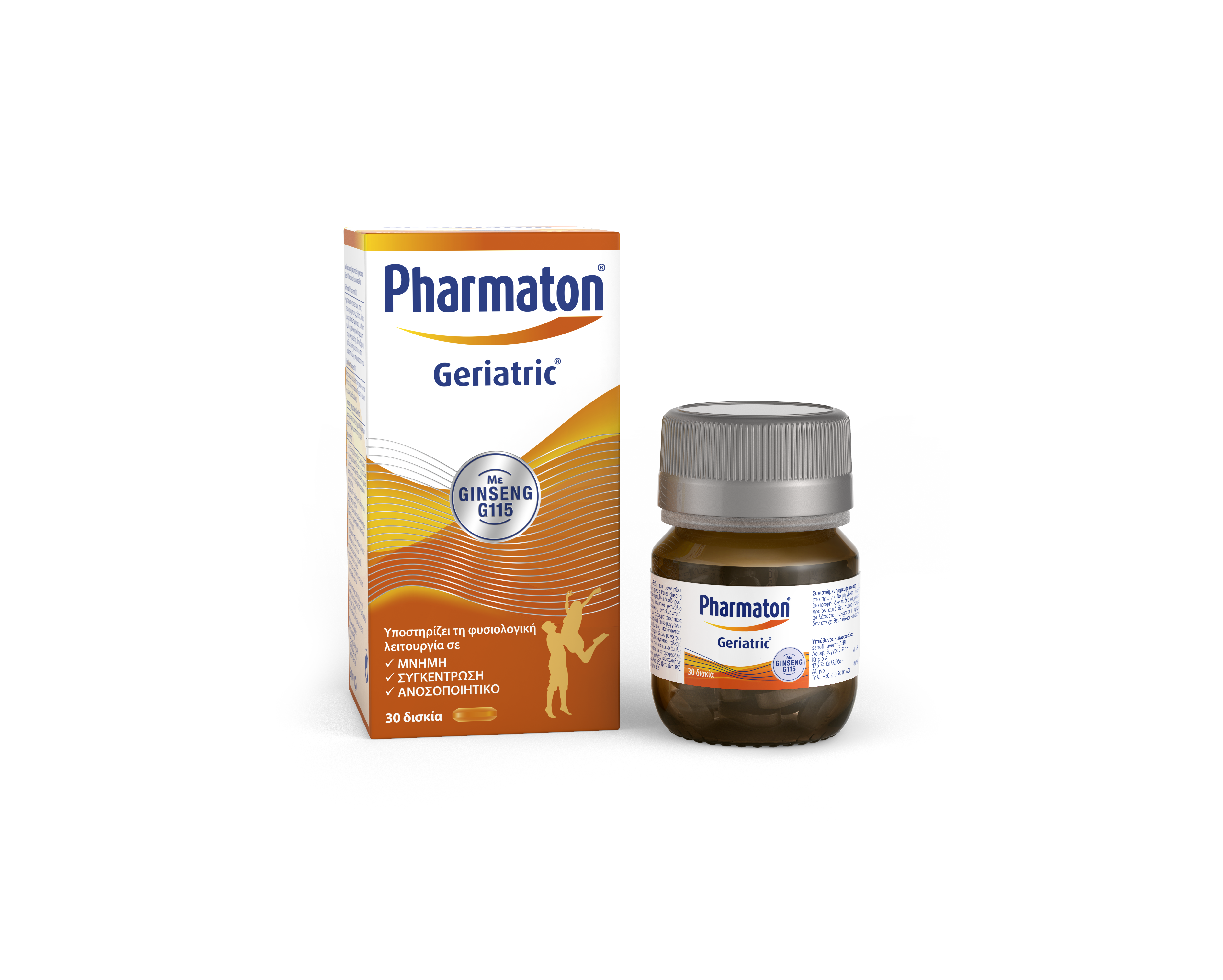 Το Pharmaton® Geriatric® είναι ένα συμπλήρωμα διατροφής με Ginseng G115 και συνδυασμό βιταμινών, μετάλλων και ιχνοστοιχείων, που σας βοηθάει να ανταποκριθείτε στις καθημερινές σας ανάγκες για ενέργεια και πνευματική ευεξία. Τα συστατικά του είναι συνδυασμένα με τέτοιο τρόπο ώστε να προσφέρουν το καλύτερο δυνατό αποτέλεσμα! Είναι η μόνη πολυβιταμίνη που χρησιμοποιεί υψηλής περιεκτικότητας τυποποιημένο εκχύλισμα Panax Ginseng G115, το οποίο έχει μελετηθεί ώστε να τονώνει τον οργανισμό σωματικά και διανοητικά!