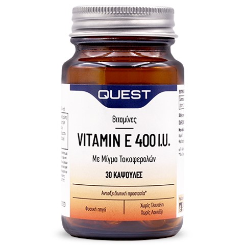 Το Vitamin E 400i.u. της Quest είναι συμπλήρωμα διατροφής και δεν υποκαθιστά μια ισορροπημένη διατροφή. Αρ. Γν. ΕΟΦ: 39066/17-05-2013.