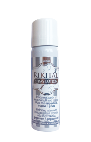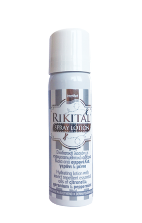 Το Rikital spray είναι μία ενυδατική λοσιόν για ήπια προστασία από τα τσιμπήματα εντόμων.