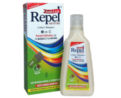 Το Repel® Anti-lice Restore αποτελείται από Lotion/Shampoo & ειδικά σχεδιασμένο χτενάκι, και απαλλάσσει αποτελεσματικά το τριχωτό της κεφαλής από τις ψείρες και τις κόνιδες. Εφαρμόζεται σε περιπτώσεις που ήδη υπάρχει διαπιστωμένη προσβολή από ψείρες.