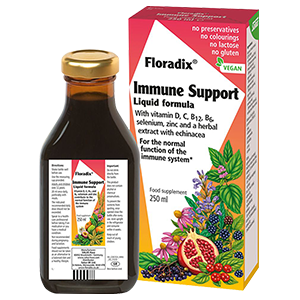 Η ενίσχυση και η υποστήριξη των αμυντικών μηχανισμών του οργανισμού είναι ευεργετική καθ’ όλη τη διάρκεια του έτους. Το Floradix Immune Support βασίζεται σε ένα υδατικό φυτικό εκχύλισμα από επιλεγμένα βότανα με εχινάκεια και ένα μείγμα συμπυκνωμένων χυμών φρούτων, που του χαρίζουν ευχάριστη φρουτώδη γεύση.