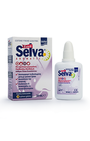 To Selva Aromatic nasal solution extra είναι ειδικά σχεδιασμένο διάλυμα χλωριούχου νατρίου 0,65%, για τον καθαρισμό και την αποσυμφόρηση της μύτης. Το Selva nasal solution είναι ισότονο με την ρινικές εκκρίσεις διάλυμα για την αποτελεσματική ρευστοποίηση και απομάκρυνση της συσσωρευμένης ρινικής βλέννης χωρίς να αφυδατώνει τον ρινικό βλεννογόνο ενώ με το χαμομήλι και την πανθενόλη που περιέχει, ανακουφίζει & προστατεύει από ερεθισμούς και φλεγμονές.