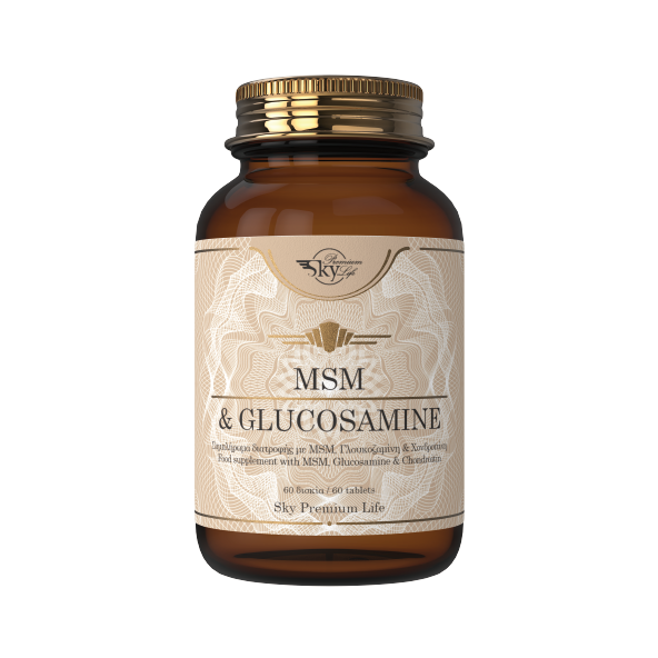 Το MSM & Glucosamine της Sky Premium Life είναι ένα συμπλήρωμα διατροφής υψηλής ποιότητας που συνδυάζει Γλυκοζαμίνη, MSM, Χονδροϊτίνη και κολλαγόνο Biocell τύπου ΙΙ. Η γλυκοζαμίνη και η χονδροϊτίνη αποτελούν βασικά δομικά συστατικά των χόνδρων των αρθρώσεων. Το κολλαγόνο είναι η πρωτεΐνη που συναντάται περισσότερο στον ανθρώπινο οργανισμό, ενώ ειδικά το κολλαγόνο τύπου ΙΙ απαντάται στους χόνδρους.