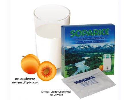 Το Soparice είναι ένα εύκολο και εύγευστο στιγμιαίο παρασκεύασμα που περιέχει Ρυζάλευρο & Ηλεκτρολύτες.