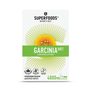 Το SUPERFOΟDS GARCINIADIET περιέχει 300mg εκχυλίσματος Garcinia cambogia υπό αυστηρών προδιαγραφών επεξεργασία ώστε να διασφαλίζεται η υψηλή περιεκτικότητα στο ενεργό συστατικό, το υδροξυκιτρικό οξύ – HCA, 180mg. Για κάθε κάψουλα απαιτούνται 4800mg φυτού.