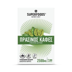 Το SUPERFOODS ΠΡΑΣΙΝΟΣ ΚΑΦΕΣ περιέχει 250mg εκχυλίσματος Coffea arabica υπό αυστηρών προδιαγραφών επεξεργασία ώστε να διασφαλίζεται η υψηλή περιεκτικότητα στο ενεργό συστατικό, το χλωρογενικό οξύ 125mg. Για κάθε κάψουλα απαιτούνται 2500mg φυτού.
