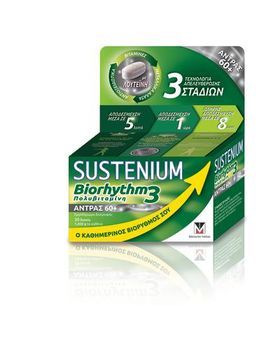 Η πολυβιταμίνη Sustenium Biorhythm 3 Άντρας 60+ διαθέτει τεχνολογία απελευθέρωσης των συστατικών σε 3 στάδια: