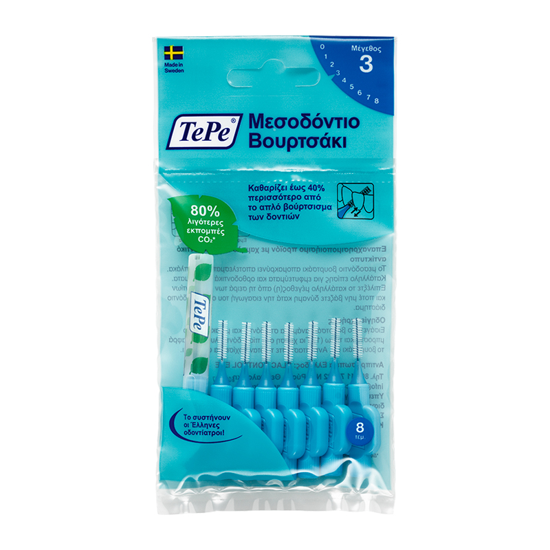 Τα μεσοδόντια βουρτσάκια της TePe, είναι σχεδιασμένα για να καθαρίζουν τα διαστήματα ανάμεσα στα δόντια, όπου μια κανονική οδοντόβουρτσα δεν μπορεί να φτάσει. Χρησιμοποιείτε τα μεσοδόντια βουρτσάκια της TePe καθημερινά για να κρατάτε τα ούλα και τα δόντια σας υγιή.