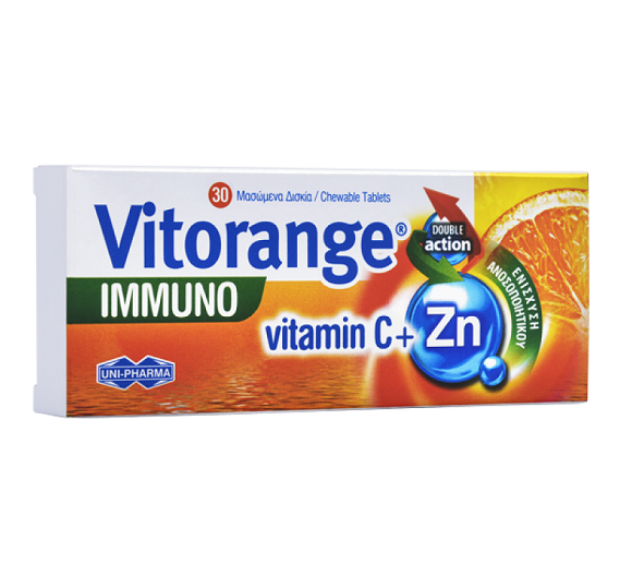 UNI-PHARMA VITORANGE IMMUNO – VITAMIN C + ZN ΜΑΣ. ΔΙΣΚΙΑ 30 ΤΜΧ.
