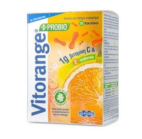 Το Vitorange PROBIO είναι ένα συμπλήρωμα  διατροφής, το οποίο δια θέτει έναν μοναδικό συνδυασμό προβιοτικών  Lactobacillus Rhamnosus, Bifidobacterium Longum  και 1 g Βιταμίνης C  επιτυγχάνοντας έτσι την άμεση ενίσχυση του οργανισμού, φροντίζοντας παράλληλα το εντερικό μικροβίωμα υποστηρίζοντας φυσικά το ανοσοποιητικό και πεπτικό σύστημα.