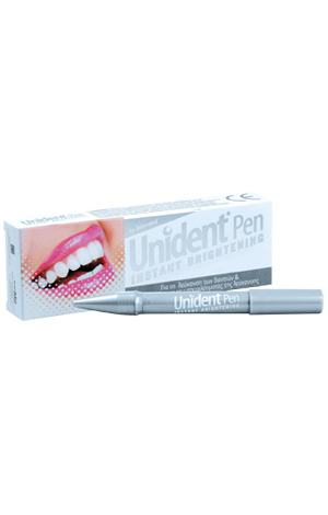 Το Unident Pen είναι πρωτοποριακό προϊόν σε μορφή στυλό για λευκότερα δόντια και λαμπερό χαμόγελο. Λευκαίνει τα δόντια σε 14 ημέρες και διατηρεί το αποτέλεσμα της λεύκανσης του ιατρείου γρήγορα, εύκολα και με ασφάλεια για μεγαλύτερο χρονικό διάστημα.