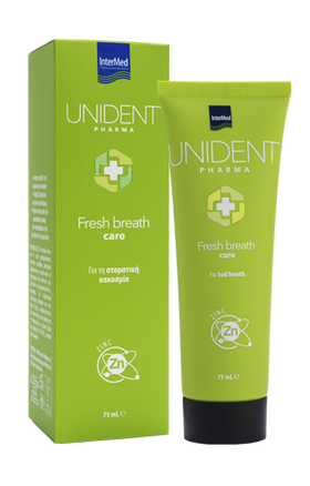 Η Unident Pharma Fresh Breath Care είναι καθημερινή οδοντόπαστα σχεδιασμένη αποκλειστικά για τον αποτελεσματικό έλεγχο της κακοσμίας του στόματος μέσω της άμεσης εξουδετέρωσης των δύσοσμων ενώσεων και τον δραστικό έλεγχο των μικροοργανισμών που την προκαλούν.