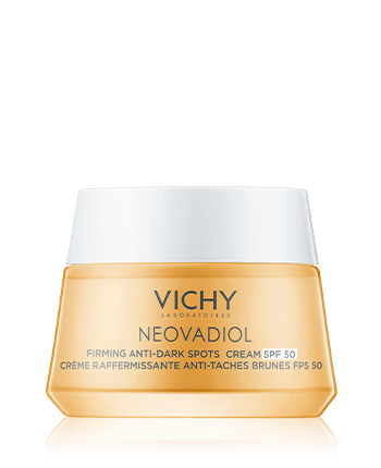 Η Neovadiol Κρέμα Ημέρας Σύσφιξης & Μείωσης Κηλίδων με δείκτη προστασίας SPF50, διορθώνει τις ρυτίδες, μειώνει τις κηλίδες και βελτιώνει την ελαστικότητα, καλύπτοντας όλες τις ανάγκες της επιδερμίδας την περίοδο της μετεμμηνόπαυσης. Την περίοδο της μετεμμηνόπαυσης, οι ορμονικές αλλαγές που βιώνουμε επιταχύνουν τη γήρανση του δέρματος. Η επιδερμίδα χάνει την πυκνότητα της και γίνεται ορατά πιο θαμπή. Το περίγραμμα αλλοιώνεται. Επειδή η αποτελεσματικότητα είναι προτεραιότητά μας στη Vichy, οι συνθέσεις έχουν κλινικά αξιολογηθεί από δερματολόγους σε εμμηνοπαυσιακές γυναίκες με ευαίσθητο δέρμα.