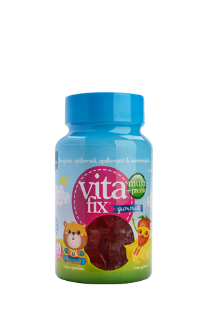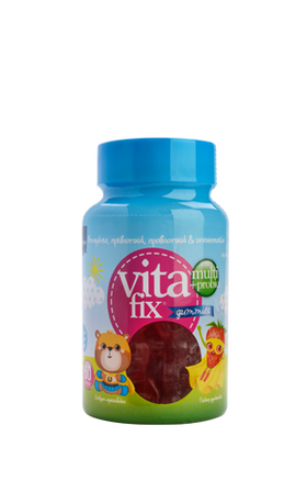 Ζελεδάκια με γεύση φράουλα και σχήμα αρκουδάκι, που περιέχουν 9 βιταμίνες, ιχνοστοιχεία, πρεβιοτικά και προβιοτικά για τη συμπλήρωση των διατροφικών αναγκών των παιδιών από 4 ετών και άνω. H μορφή και υπέροχη γεύση τους τα καθιστά λαχταριστά για τα μικρά παιδιά.