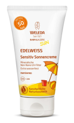 Το Weleda Sun Edelweiss Baby & Kids Sunscreen Lotion Sensitive SPF50 είναι ένα αντιηλιακό γαλάκτωμα προσώπου και σώματος υψηλής προστασίας για βρέφη και παιδιά, με φυσικά φίλτρα και βιολογικά συστατικά, κατάλληλο για ευαίσθητες επιδερμίδες.