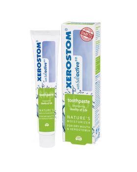 Η οδοντόκρεμα Xerostom αυξάνει την παραγωγή σιέλου έως και 200% και βελτιώνει τη ροή του ανακουφίζοντας σημαντικά τη ξηροστομία και την αφυδάτωση της στοματικής κοιλότητας.