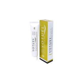 Η ανανεωμένη λευκαντική οδοντόκρεμα YOTUEL pharma B5 περιέχει βιταμίνη B5 που βοηθά την ευαίσθητη στοματική κοιλότητα και τα ευαίσθητα ούλα γιατί προάγει την επούλωση ενώ βοηθά στην λεύκανση των δοντιών με τον συνδυασμό ειδικής μορφής πυριτίου με τη χαμηλότερη τριβή (36RDA) για το σμάλτο και φυσικών ενζύμων.
