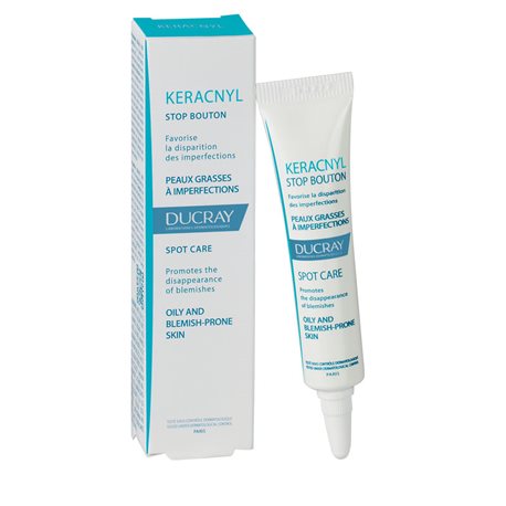 Το Keracnyl Stop Bouton δρα άμεσα στα σπυράκια χάρη στα πολυ-υδροξυ-οξέα (AHA + BHA) με κερατορυθμιστική δράση, το γλυκυρριζικό αμμώνιο με αντιερεθιστική δράση, που ενισχύεται παρουσία του Λακταμίδιου και την αλκοόλη με ξηραντική δράση.
