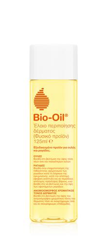 Το Bio Oil Skincare Oil Natural, είναι ένα ειδικό έλαιο περιποίησης του δέρματος, κατάλληλο για την πρόληψη και ανάπλαση ενάντια σε ουλές, ραγάδες και ανομοιόμορφο χρωματικό τόνο δέρματος με 100% φυσικά και vegan συστατικά. Η ειδική σύνθεσή του αποτελείται από ένα συνδυασμό φυσικών ελαίων (Άγριας Σόγιας, Ηλίανθου, Ρόδιου, Αγριοτριανταφυλλιάς, Ρωμαϊκού Χαμομηλιού κ.ά.), Βισαβολόλη (παρασκευάζεται από τα λουλούδια του Γερμανικού Χαμομηλιού - είναι γνωστή κυρίως για τις επουλωτικές και αντιβακτηριακές της ιδιότητες) και Τοκοφερόλη (είναι λιποδιαλυτό αντιοξειδωτικό, γνωστό ως βιταμίνη Ε).