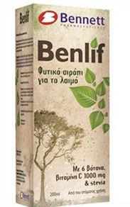 Benlif & BenlifKids, τα νέα φυτικά σιρόπια από την Bennett Φαρμακευτική Α.Ε., που ανακουφίζουν από τα συμπτώματα του κρυολογήματος, όπως βήχας και καταρροή, καταπραΰνουν τον ερεθισμένο λαιμό και ενισχύουν την άμυνα του οργανισμού, αφού περιλαμβάνουν στη σύνθεσή τους και Βιταμίνη C. Λόγω της ειδικής φυτικής σύνθεσής τους έχουν αντιβηχική, βλεννολυτική, μαλακτική και αντιφλεγμονώδη δράση.