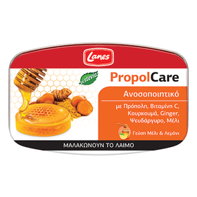 Οι καραμέλες PropolCare με μέλι και λεμόνι συνδυάζουν πρόπολη, κουρκουμά, ginger, βιταμίνη C, ψευδάργυρο και μέλι. Η πρόπολη θεωρείται ως  «φυσικό αντιβιοτικό» και συμβάλλει στην αντιμετώπιση των συμπτωμάτων του πονόλαιμου χάρη στις αντισηπτικές και αντιοξειδωτικές ιδιότητες. Ο κουρκουμάς είναι ιδιαίτερα γνωστός για τις αντιοξειδωτικές και αντιφλεγμονώδεις ιδιότητες. Το μέλι είναι πλούσιο σε σάκχαρα, βιταμίνες και ιχνοστοιχεία και έχει αντιοξειδωτικές και αντιμικροβιακές ιδιότητες.  Η βιταμίνη C και ο ψευδάργυρος συμβάλλουν στη φυσιολογική λειτουργία του ανοσοποιητικού καθώς και στην προστασία των κυττάρων από το οξειδωτικό στρες. Παράλληλα, η βιταμίνη C συμβάλλει στη φυσιολογική λειτουργία των μεταβολικών διεργασιών που αποσκοπούν στην παραγωγή ενέργειας, στη φυσιολογική ψυχολογική λειτουργία και στη μείωση της κούρασης.