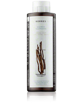 Κορρές γλυκύρριζα και τσουκνίδα σαμπουάν για λιπαρά μαλλιά, με εκχυλίσματα από δίκταμο, ματζουράνα και τσαι του βουνού βιολογικής καλλιέργειας από την Κρήτη.
