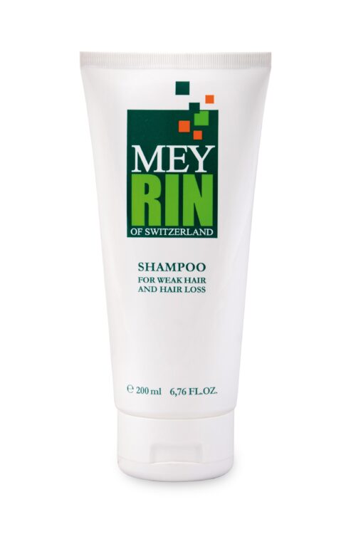 Το προϊόν MEYRIN SHAMPOO έχει αναπτυχθεί ειδικά για χρήση σε αδύναμα μαλλιά και σε περιπτώσεις τριχόπτωσης. Περιέχει απαλούς καθαριστικούς παράγοντες, φυσικούς ενυδατικούς παράγοντες (φρουκτόζη, γλυκόζη, σακχαρόζη, ουρία, αλανίνη κ.λ.π.), Πανθενόλη (προ – βιταμίνη Β5), ένα μοναδικό σύμπλεγμα ιχνοστοιχείων (Νάτριο, Μαγνήσιο, Μαγγάνιοκαι Ψευδάργυρο) και Hair-gro complex (συνδυασμός ματρικίνης, απιγενίνης και εκχυλίσματος φύλλων ελιάς). Ο συνδυασμός αυτός διεγείρει τον κυτταρικό μεταβολισμό και την κυτταρική ανάπτυξη, ενώ επαναφέρει τη μικροκυκλοφορία του τριχωτού της κεφαλής και επεκτείνει τον κύκλο ζωής του θυλακίου της τρίχας. Η απαλή του σύνθεση και το ουδέτερο pH,το καθιστά ιδανικό σαμπουάν για καθημερινή χρήση.