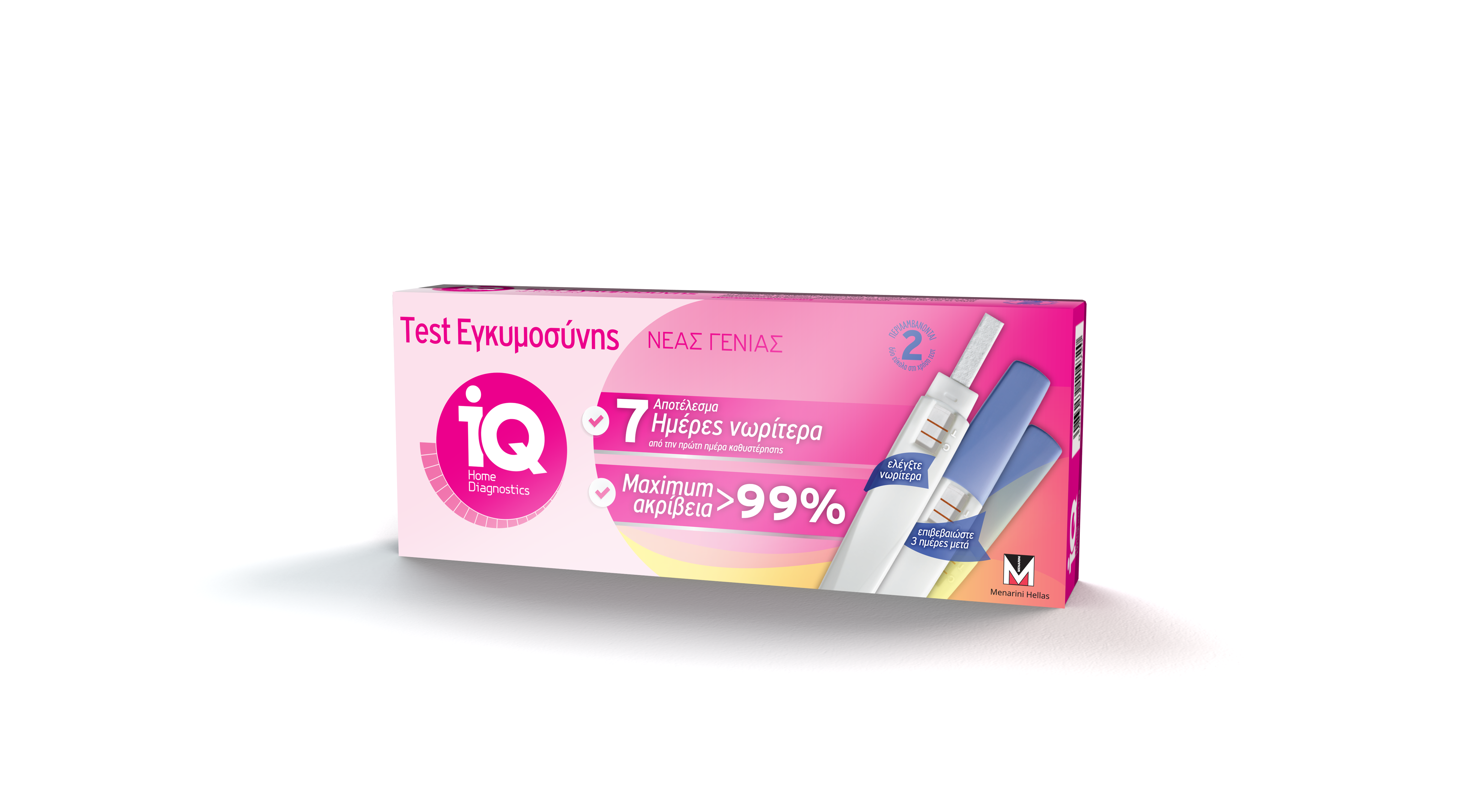 Το iQ Τεστ Εγκυμοσύνης είναι ένα τεστ εγκυμοσύνης Νέας Γενιάς με μέθοδο διπλής ανίχνευσης 2 εκ των μορφών της ορμόνης κυήσεως. Δίνει αποτέλεσμα έως και 7 ημέρες νωρίτερα από την πρώτη ημέρα καθυστέρησης & περισσότερη από 99% ακρίβεια ακόμα και στην πρόωρη ανίχνευση.