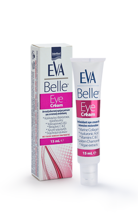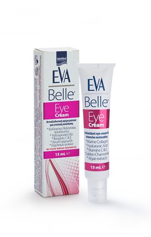Η Eva Belle Eye Cream με κολλαγόνο, υαλουρονικό οξύ, βιταμίνες C & E, χρυσό χαμομήλι και εκχυλίσματα φυκιών γεμίζει και λειαίνει τις βαθιές ρυτίδες στην περιοχή γύρω από τα μάτια, μειώνει τους μαύρους κύκλους και τις σακούλες κάτω από τα μάτια, συγκρατεί την υγρασία της επιδερμίδας αναπλάθοντας την σε κυτταρικό επίπεδο και βελτιώνει την ελαστικότητα της επιδερμίδας.