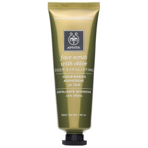 To Scrub Προσώπου για Βαθιά Απολέπιση με ελιά έχει πλούσια σύνθεση και περιέχει 95% συστατικά φυσικής προέλευσης.