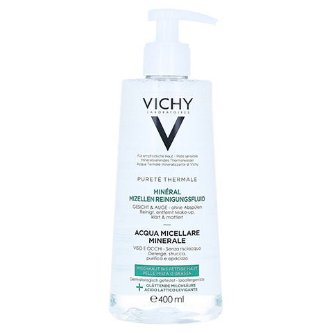 Ένα ισχυρό μικυλλιακό νερό για τη μικτή και λιπαρή επιδερμίδα, εμπλουτισμένο με Ιαματικό Μεταλλικό Νερό της VICHY και Γαλακτικό Οξύ