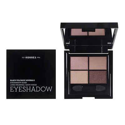 Οι νέες παλέτες σκιών Black Volcanic Minerals Eyeshadow Quads της Κορρές εστιάζουν στα Black Volcanic Minerals - ζωτικά ηφαιστειακά ιχνοστοιχεία με τονωτικές ιδιότητες, στα οποία οφείλεται η βαθιά, έντονη χρωματική απόδοση.