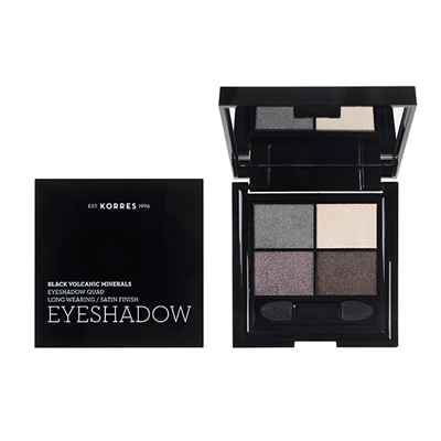 Οι νέες παλέτες σκιών Black Volcanic Minerals Eyeshadow Quads της Κορρές εστιάζουν στα Black Volcanic Minerals - ζωτικά ηφαιστειακά ιχνοστοιχεία με τονωτικές ιδιότητες, στα οποία οφείλεται η βαθιά, έντονη χρωματική απόδοση.