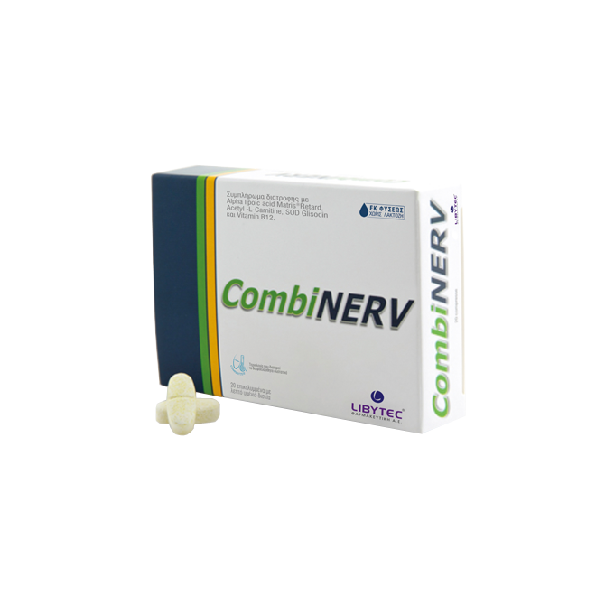 To Combinerv αποτελεί ένα καινοτόμο τετραπλό συνδυασμό 2 αντιοξειδωτικών του α-λιποϊκού οξέος (ALA) και του υπεροξείδιου της δισμουτάσης (SOD) μαζί με ακέτυλο-καρνιτίνη και Βιταμίνη Β12.