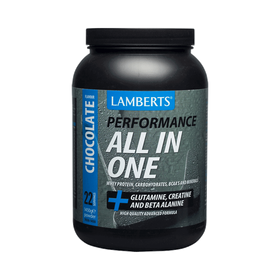 Η ALL-IN-ONE Sports Shake με γεύση σοκολάτας της Lamberts® αποτελεί ένα από τα κορυφαία All-In-One προϊόντα αθλητικής διατροφής, καθώς παρέχει ανά 65g δόσης (περίπου 2 scoops):