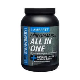 Η ALL-IN-ONE Sports Shake της Lamberts®με γεύση φράουλα αποτελεί ένα από τα κορυφαία All-In-One προϊόντα αθλητικής διατροφής, καθώς παρέχει ανά 65g δόσης (περίπου 2 scoops):