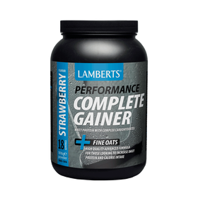 Η Complete Gainer της Lamberts με γεύση φράουλα, αποτελεί ένα ειδικά σχεδιασμένο προϊόν αθλητικής διατροφής το οποίο περιέχει έναν συνδυασμό υψηλής ποιότητας και καθαρότητας πρωτεΐνης ορού γάλακτος (Whey Concentrate & Isolate), σύνθετων υδατανθράκων κρεατίνης, βήτα αλανίνης και HMB.