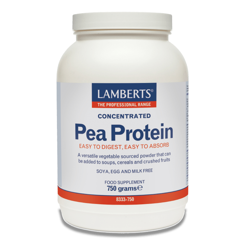Η Pea Protein της Lamberts, όπως προδίδει το όνομα της, αποτελεί ένα προϊόν πρωτεΐνης από μπιζέλια. Η διαδικασία της εκχύλισης και η χρήση φρέσκων μπιζελιών αυξάνει την περιεκτικότητα της πρωτεΐνης του προϊόντος από τα επίπεδα του 6% στο 90%. Αυτή η μοναδική διαδικασία παράγει υψηλής περιεκτικότητας διαλυτή πρωτεΐνη που είναι πιο εύκολα διασπώμενη και απορροφούμενη. Η επιλογή αγνών μπιζελιών ως πηγή παραγωγής αυτής της πρωτεΐνης έγινε επειδή το προφίλ των αμινοξέων που παρέχουν τα μπιζέλια είναι πλούσια σε ‘αμινοξέα διακλαδούμενης αλύσου’ (λευκίνη, ισολευκίνη και βαλίνη) και αποτελούν την πλουσιότερη σε αργινίνη φυτική πηγή σε σχέση με οποιαδήποτε άλλη αντίστοιχη διαθέσιμη. Η συγκεκριμένη φόρμουλα δεν περιέχει σιτάρι, γλουτένη, γαλακτοκομικά προϊόντα, αυγά, σόγια ή ζωικά τρόφιμα.