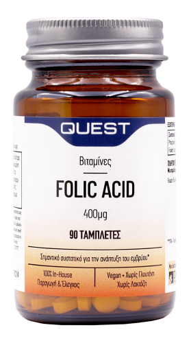 Το συμπλήρωμα διατροφής Folic Acid της Quest παρέχει 400μg φυλλικού οξέος το οποίο μπορεί να μειώσει τον κίνδυνο επιπλοκών κατά τη γέννηση και να υποστηρίξει μια υγιή εγκυμοσύνη και εμβρυική ανάπτυξη.